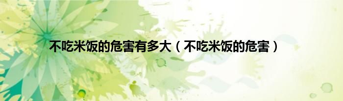 大家好,小常来为大家解答以上问题。不吃米饭的危害有多大,不吃米饭的危害很多人还不知道,现在让我们一起来看看吧!
