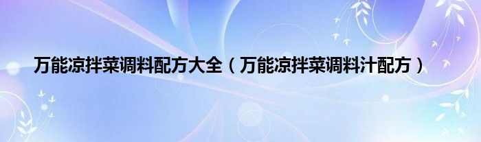 大家好,小科来为大家解答以上问题。万能凉拌菜调料配方大全,万能凉拌菜调料汁配方很多人还不知道,现在让我们一起来看看吧!