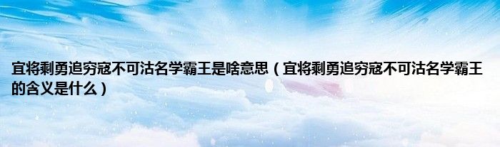 大家好,小常来为大家解答以上问题。宜将剩勇追穷寇不可沽名学霸王是啥意思,宜将剩勇追穷寇不可沽名学霸王的含义是什么很多人还不知道,现在让我们一起来看看吧!
