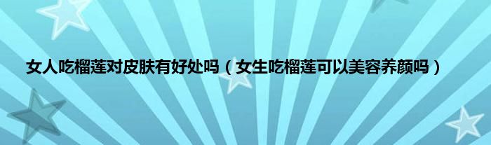 大家好,小常来为大家解答以上问题。女人吃榴莲对皮肤有好处吗,女生吃榴莲可以美容养颜吗很多人还不知道,现在让我们一起来看看吧!