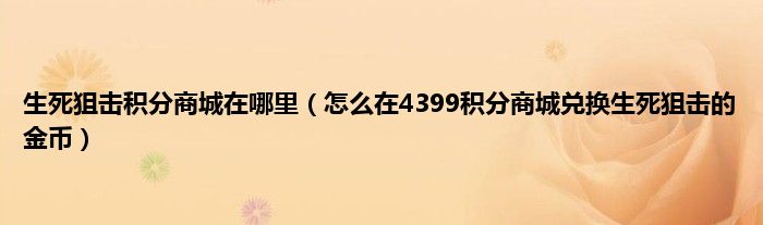 大家好,小常来为大家解答以上问题。生死狙击积分商城在哪里,怎么在4399积分商城兑换生死狙击的金币很多人还不知道,现在让我们一起来看看吧!