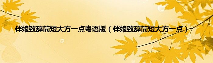 大家好,小常来为大家解答以上问题。伴娘致辞简短大方一点粤语版,伴娘致辞简短大方一点很多人还不知道,现在让我们一起来看看吧!