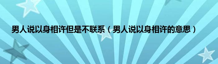 大家好,小常来为大家解答以上问题。男人说以身相许但是不联系,男人说以身相许的意思很多人还不知道,现在让我们一起来看看吧!