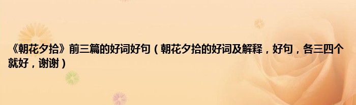 大家好,小常来为大家解答以上问题。《朝花夕拾》前三篇的好词好句,朝花夕拾的好词及解释,好句,各三四个就好,谢谢很多人还不知道,现在让我们一起来看看吧!