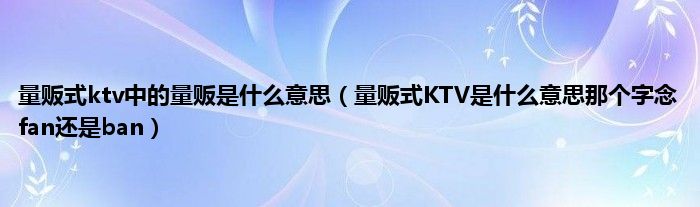 大家好,小常来为大家解答以上问题。量贩式ktv中的量贩是什么意思,量贩式KTV是什么意思那个字念fan还是ban很多人还不知道,现在让我们一起来看看吧!