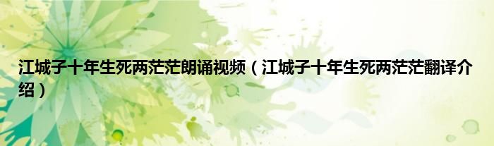 大家好,小常来为大家解答以上问题。江城子十年生死两茫茫朗诵视频,江城子十年生死两茫茫翻译介绍很多人还不知道,现在让我们一起来看看吧!