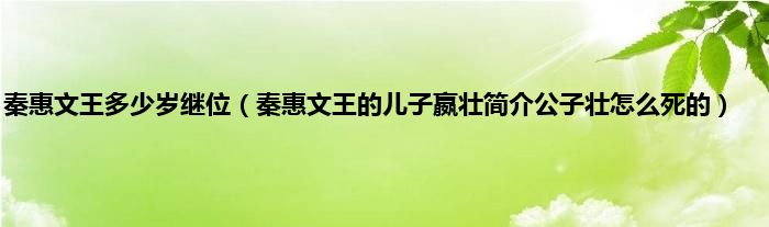 大家好,小常来为大家解答以上问题。秦惠文王多少岁继位,秦惠文王的儿子嬴壮简介公子壮怎么死的很多人还不知道,现在让我们一起来看看吧!