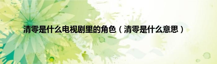 大家好,小常来为大家解答以上问题。清零是什么电视剧里的角色,清零是什么意思很多人还不知道,现在让我们一起来看看吧!