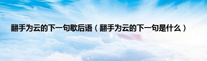 大家好,小常来为大家解答以上问题。翻手为云的下一句歇后语,翻手为云的下一句是什么很多人还不知道,现在让我们一起来看看吧!