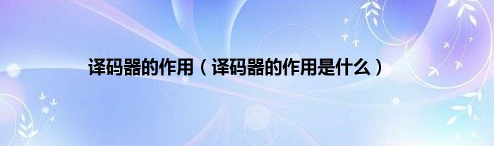 大家好,小常来为大家解答以上问题。译码器的作用,译码器的作用是什么很多人还不知道,现在让我们一起来看看吧!