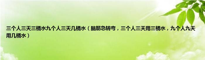 大家好,小常来为大家解答以上问题。三个人三天三桶水九个人三天几桶水,脑筋急转弯,三个人三天用三桶水,九个人九天用几桶水很多人还不知道,现在让我们一起来看看吧!