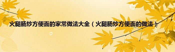大家好,小常来为大家解答以上问题。火腿肠炒方便面的家常做法大全,火腿肠炒方便面的做法很多人还不知道,现在让我们一起来看看吧!