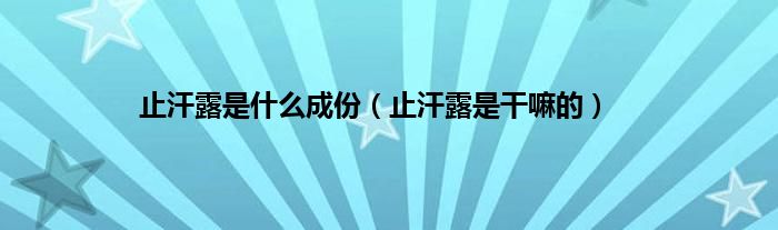 大家好,小科来为大家解答以上问题。止汗露是什么成份,止汗露是干嘛的很多人还不知道,现在让我们一起来看看吧!