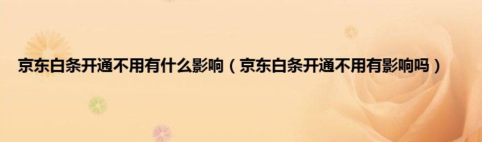 大家好,小常来为大家解答以上问题。京东白条开通不用有什么影响,京东白条开通不用有影响吗很多人还不知道,现在让我们一起来看看吧!