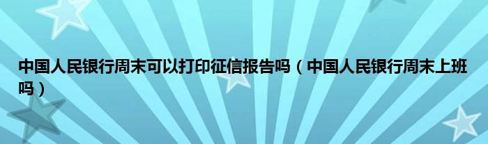 大家好,小常来为大家解答以上问题。中国人民银行周末可以打印征信报告吗,中国人民银行周末上班吗很多人还不知道,现在让我们一起来看看吧!
