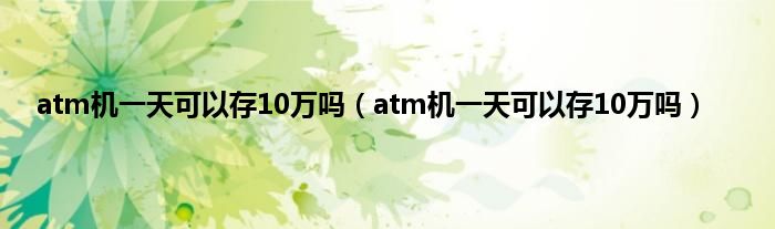 大家好,小常来为大家解答以上问题。atm机一天可以存10万吗,atm机一天可以存10万吗很多人还不知道,现在让我们一起来看看吧!