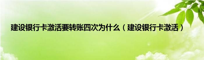 大家好,小常来为大家解答以上问题。建设银行卡激活要转账四次为什么,建设银行卡激活很多人还不知道,现在让我们一起来看看吧!