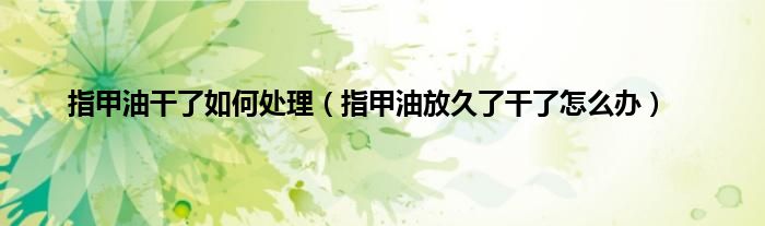 大家好,小科来为大家解答以上问题。指甲油干了如何处理,指甲油放久了干了怎么办很多人还不知道,现在让我们一起来看看吧!