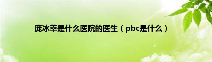 大家好,小常来为大家解答以上问题。庞冰萃是什么医院的医生,pbc是什么很多人还不知道,现在让我们一起来看看吧!