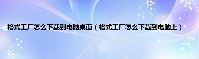 大家好,小常来为大家解答以上问题。格式工厂怎么下载到电脑桌面,格式工厂怎么下载到电脑上很多人还不知道,现在让我们一起来看看吧!