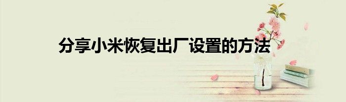 现在大家使用手机的频率越来越频繁,手机也为我们提供了许多的便利,今天小编也来说一下这个分享小米恢复出厂设置的方法相关的文章,这个操作其实不复杂,接下来就给大家介绍一下分享小米恢复出厂设置的方法,一起来看看吧: