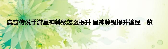 奥奇传说手游星神等级怎么提升?
