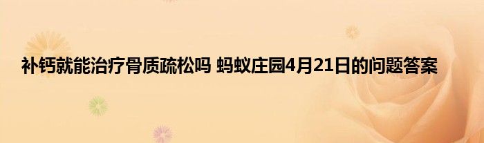 蚂蚁庄园小课堂每天都有很多玩家都在参与,小课堂在每日的凌晨时候都会给玩家们带来一些全新的问题,玩家只需要回答出这些问题的正确答案就能够拿到当中的饲料了。4月21日的最新问题已经带来,今天的问题就是补钙就能治疗骨质疏松吗?下面就让小编给玩家们带来这道题目答案的介绍,希翼帮到大家。
