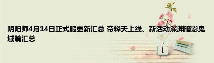 阴阳师4月14日正式服更新汇总 帝释天上线、新活动深渊暗影鬼域篇汇总