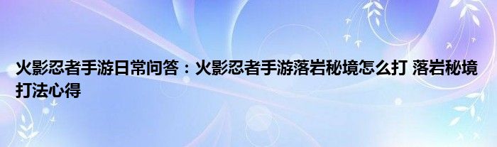 今天来聊聊关于火影忍者手游日常问答:火影忍者手游落岩秘境怎么打,落岩秘境打法心得的文章,游戏是很多人的选择,但是游戏玩多了也会身心疲惫,现在就为大家来简单介绍下火影忍者手游日常问答:火影忍者手游落岩秘境怎么打,落岩秘境打法心得,希望对各位小伙伴们有所帮助。