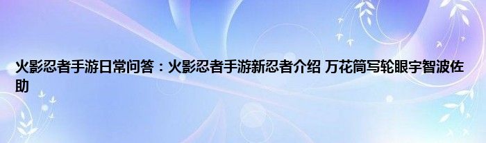 今天来聊聊关于火影忍者手游日常问答:火影忍者手游新忍者介绍,万花筒写轮眼宇智波佐助的文章,游戏是很多人的选择,但是游戏玩多了也会身心疲惫,现在就为大家来简单介绍下火影忍者手游日常问答:火影忍者手游新忍者介绍,万花筒写轮眼宇智波佐助,希望对各位小伙伴们有所帮助。