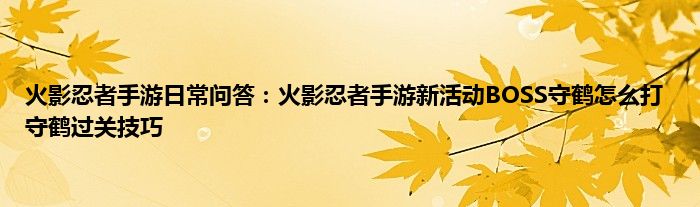 以上就是火影忍者手游日常问答:火影忍者手游新活动BOSS守鹤怎么打,守鹤过关技巧的推荐,相信通过火影忍者手游日常问答:火影忍者手游新活动BOSS守鹤怎么打,守鹤过关技巧这篇文章能帮到你,也欢迎对游戏很感兴趣小伙伴们一起来探讨。