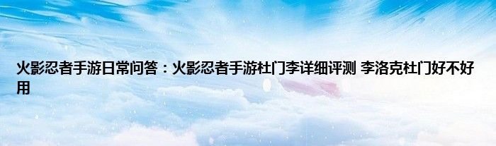 小编今天给各位玩家朋友们带来的是火影忍者手游日常问答:火影忍者手游杜门李详细评测,李洛克杜门好不好用,有记得的玩家朋友吗?不记得也没有关系,小编已经帮助大家把火影忍者手游日常问答:火影忍者手游杜门李详细评测,李洛克杜门好不好用找了出来,你只需要动动你的小手就可以轻松知道啦,快来瞧一瞧吧。