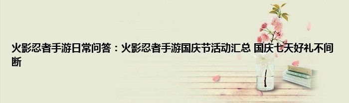以上就是火影忍者手游日常问答:火影忍者手游国庆节活动汇总,国庆七天好礼不间断的推荐,相信通过火影忍者手游日常问答:火影忍者手游国庆节活动汇总,国庆七天好礼不间断这篇文章能帮到你,也欢迎对游戏很感兴趣小伙伴们一起来探讨。