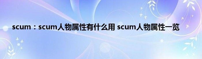 今天来聊聊关于scum:scum人物属性有什么用,scum人物属性一览的文章,游戏是很多人的选择,但是游戏玩多了也会身心疲惫,现在就为大家来简单介绍下scum:scum人物属性有什么用,scum人物属性一览,希望对各位小伙伴们有所帮助。