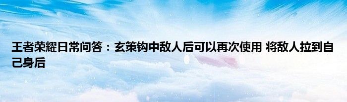 小编今天给各位玩家朋友们带来的是王者荣耀日常问答:玄策钩中敌人后可以再次使用,将敌人拉到自己身后,有记得的玩家朋友吗?不记得也没有关系,小编已经帮助大家把王者荣耀日常问答:玄策钩中敌人后可以再次使用,将敌人拉到自己身后找了出来,你只需要动动你的小手就可以轻松知道啦,快来瞧一瞧吧。