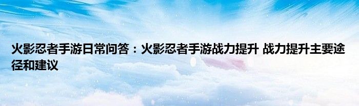 小编今天给各位玩家朋友们带来的是火影忍者手游日常问答:火影忍者手游战力提升,战力提升主要途径和建议,有记得的玩家朋友吗?不记得也没有关系,小编已经帮助大家把火影忍者手游日常问答:火影忍者手游战力提升,战力提升主要途径和建议找了出来,你只需要动动你的小手就可以轻松知道啦,快来瞧一瞧吧。