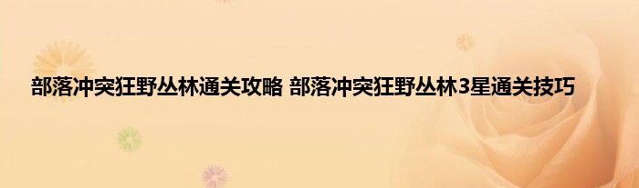 狂野丛林怎么3星通关?