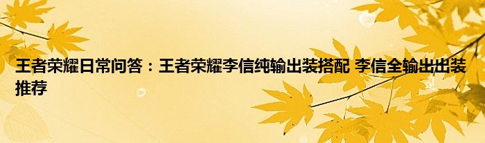 以上就是王者荣耀日常问答:王者荣耀李信纯输出装搭配,李信全输出出装推荐的推荐,相信通过王者荣耀日常问答:王者荣耀李信纯输出装搭配,李信全输出出装推荐这篇文章能帮到你,也欢迎对游戏很感兴趣小伙伴们一起来探讨。