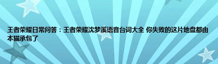 以上就是王者荣耀日常问答:王者荣耀沈梦溪语音台词大全,你失败的这片地盘都由本猫承包了的推荐,相信通过王者荣耀日常问答:王者荣耀沈梦溪语音台词大全,你失败的这片地盘都由本猫承包了这篇文章能帮到你,也欢迎对游戏很感兴趣小伙伴们一起来探讨。