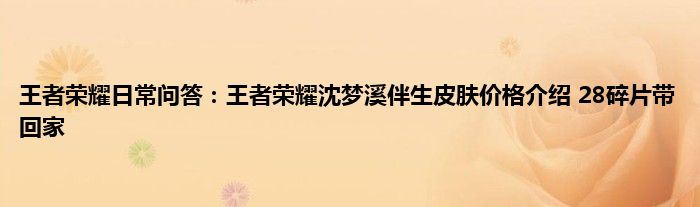 以上就是王者荣耀日常问答:王者荣耀沈梦溪伴生皮肤价格介绍,28碎片带回家的推荐,相信通过王者荣耀日常问答:王者荣耀沈梦溪伴生皮肤价格介绍,28碎片带回家这篇文章能帮到你,也欢迎对游戏很感兴趣小伙伴们一起来探讨。