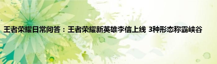 以上就是王者荣耀日常问答:王者荣耀新英雄李信上线,3种形态称霸峡谷的推荐,相信通过王者荣耀日常问答:王者荣耀新英雄李信上线,3种形态称霸峡谷这篇文章能帮到你,也欢迎对游戏很感兴趣小伙伴们一起来探讨。