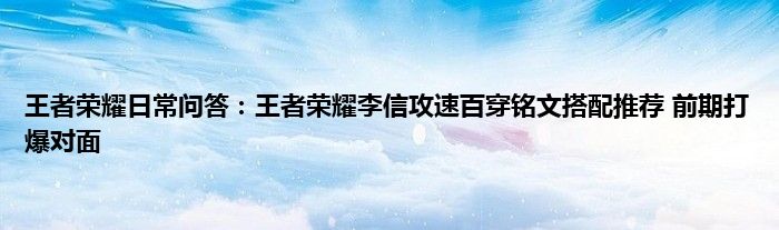 小编今天给各位玩家朋友们带来的是王者荣耀日常问答:王者荣耀李信攻速百穿铭文搭配推荐,前期打爆对面,有记得的玩家朋友吗?不记得也没有关系,小编已经帮助大家把王者荣耀日常问答:王者荣耀李信攻速百穿铭文搭配推荐,前期打爆对面找了出来,你只需要动动你的小手就可以轻松知道啦,快来瞧一瞧吧。