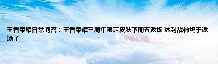 以上就是王者荣耀日常问答:王者荣耀三周年限定皮肤下周五返场,冰封战神终于返场了的推荐,相信通过王者荣耀日常问答:王者荣耀三周年限定皮肤下周五返场,冰封战神终于返场了这篇文章能帮到你,也欢迎对游戏很感兴趣小伙伴们一起来探讨。