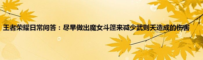 小编今天给各位玩家朋友们带来的是王者荣耀日常问答:尽早做出魔女斗篷来减少武则天造成的伤害,有记得的玩家朋友吗?不记得也没有关系,小编已经帮助大家把王者荣耀日常问答:尽早做出魔女斗篷来减少武则天造成的伤害找了出来,你只需要动动你的小手就可以轻松知道啦,快来瞧一瞧吧。