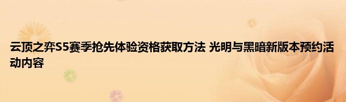 云顶之弈S5赛季马上到来,目前新的赛季名为光明与黑暗。这次的赛季和之前的赛季不太一样,目前已经开启了新的模式的抢先体验资格,玩家们可以申请来获得资格。具体的玩法是什么呢?下面就带来了具体的活动地址和玩法内容。