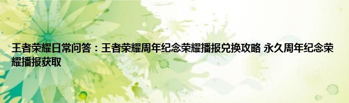 今天来聊聊关于王者荣耀日常问答:王者荣耀周年纪念荣耀播报兑换攻略,永久周年纪念荣耀播报获取的文章,游戏是很多人的选择,但是游戏玩多了也会身心疲惫,现在就为大家来简单介绍下王者荣耀日常问答:王者荣耀周年纪念荣耀播报兑换攻略,永久周年纪念荣耀播报获取,希望对各位小伙伴们有所帮助。