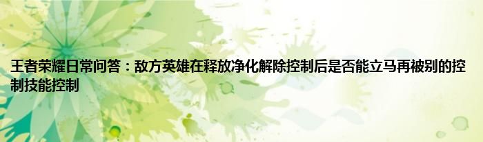 问题:敌方英雄在释放净化解除控制后是否能立马再被别的控制技能控制?