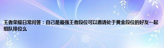 问题:自己是最强王者段位可以邀请处于黄金段位的好友一起组队排位么?