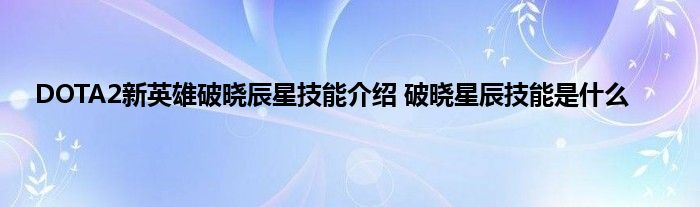 Dota2马上推出新的英雄,这位新英雄叫做破晓星辰,很多玩家看到新英雄第一时间自然就是想知道新英雄的技能是什么,以及天赋是什么,小编收集了有关内容和资讯,下面就来跟着小编一起来看一下详情吧。