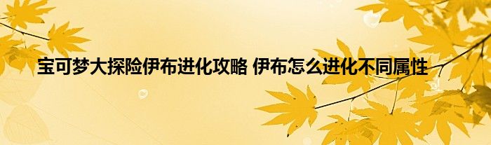 宝可梦大探险伊布在游戏里面是一个比较特别的宝可梦了,伊布通过进化可以进化成不同属性的,而且这些属性的伊布战斗能力都是不同的,而且进化方法也是不一样的,很多玩家不知道伊布要如何进化成不同属性,那下面就让小编给玩家们带来进化方法的介绍,希翼能够帮助到各位玩家们吧。